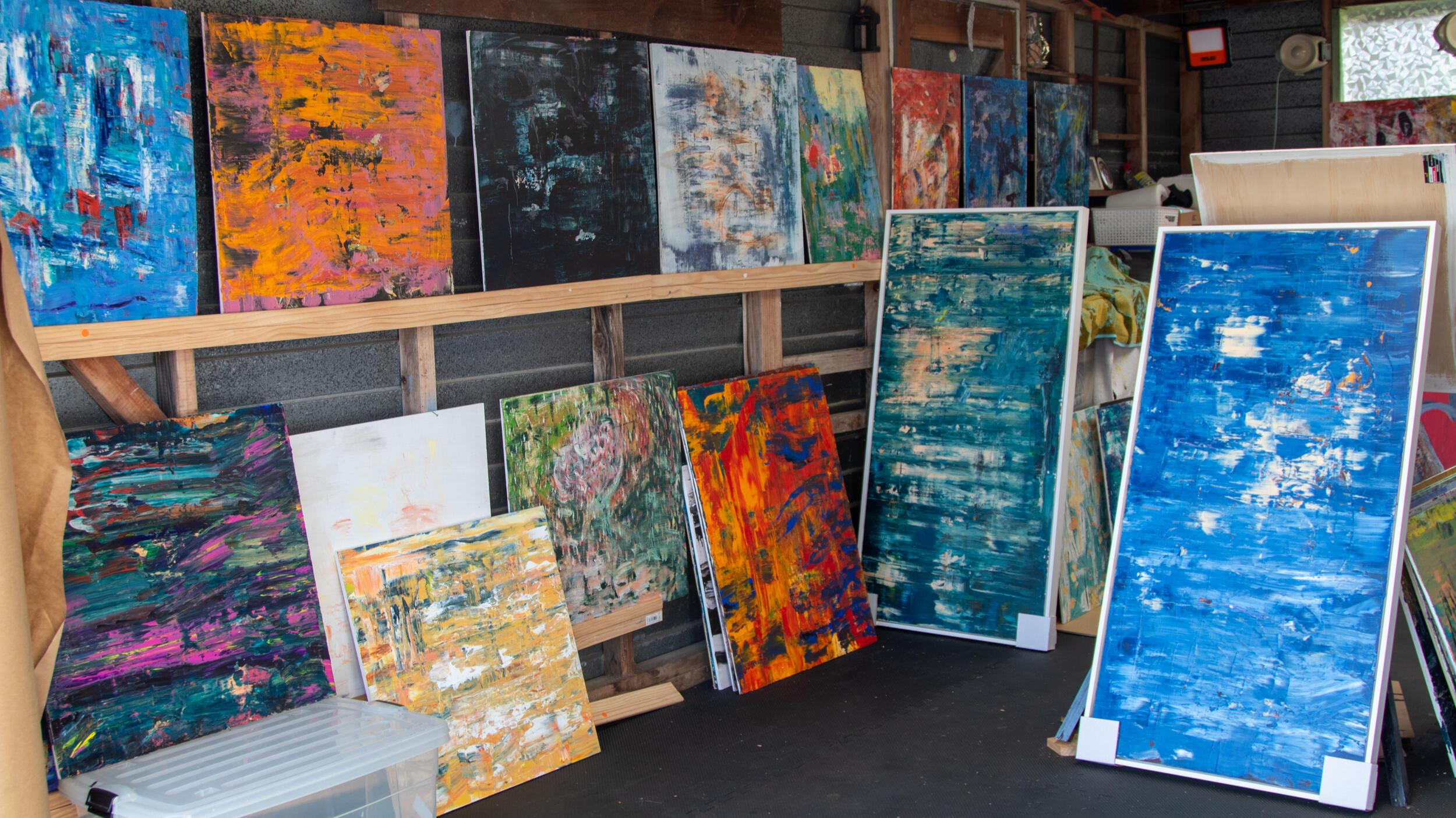 Two Burdens expresses something that I have never been able to communicate in words, despite being pretty good at writing and speaking. I am not going to share it here, because the art is about the burdens we all carry.Painting makes it possible to accept my struggle and turn it into a force for good. Neighbours visit the studio. Digital degens can connect with the visuals. A sense of place and belonging begins to develop.